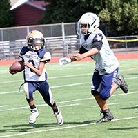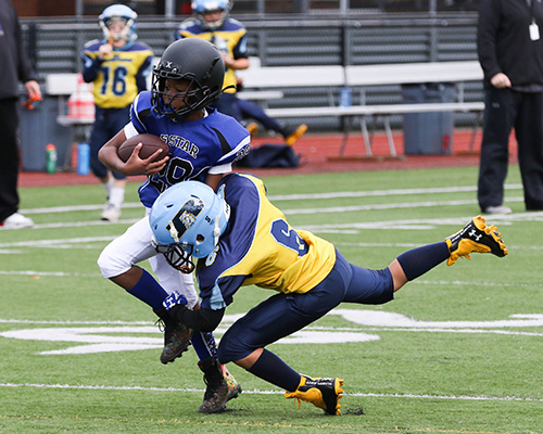 Quarterback Micah Meneese had another monster game leading the undefeated Bruins to their fourth straight shutout. Meneese had five touchdowns in the first half – two quarterback keepers and three on beautiful passes to KJ Hightower (two) and Ray Clark III. Liufau Loumoli and KJ Hightower set the tone defensively and helped Benson achieve this win. The Bruins are 5-0 for the season. No team comes into a contest with a loss on their minds and the Seatac Sharks are no different. The Sharks fought valiantly and competitively but this week came up short.
