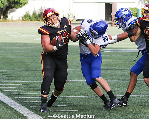 At the start of the 2nd half, O’Dea was able to control the line of scrimmage on defense forcing the Cougars into quick three and outs and giving O’Dea chances to strike on offense which they struck gold scoring again on a 4-yard touchdown run by Mika.