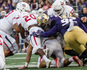 It didn’t take long for the University of Washington Huskies to get things going in their match up against Fresno State, their last non-conference game of the regular season. After the defense started the game with a quick stop, it only took the Husky offense only five plays to score the first touchdown of the evening. Running back Myles Gaskin was able to get loose down the sideline for a 28-yard touchdown run that opened the flood gates for an incredible, high scoring first quarter for Washington.