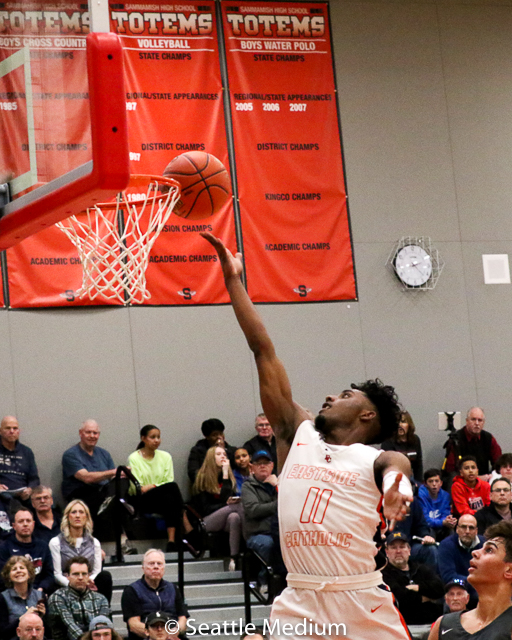 The Eastside Catholic Crusaders squeaked out a 76-70 overtime win over Mt. Spokane in their WIAA Boys 3A Regional matchup Saturday at Sammamish High School.