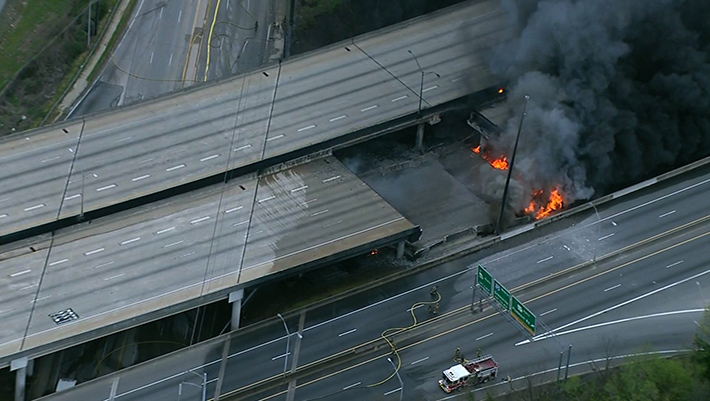 ATLANTA (CNN) — A massive fireball collapsed a portion of Interstate 85 in Atlanta, sending motorists driving through billowing black smoke before the city shut down that section of the highway indefinitely.