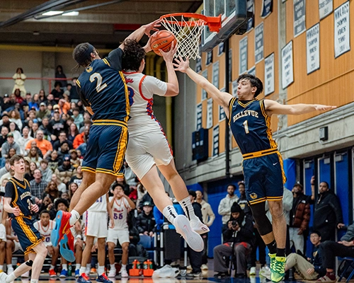 Bellevue came out firing in the third quarter, as Skaggs hit a three-point shot to cut the deficit to 43–34. The fast pace of the game continued, as Stokes and Bellevue’s Eduardo Molina traded baskets early. But the Vikings quickly reminded everyone why they earned the No. 1 seed. A surge highlighted by three consecutive dunks from Micah Ili-Meneese, Crawford and Stokes pushed the Vikings’ lead to 53–36 and shifted the momentum firmly back to Rainier Beach.