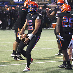 On the ensuing kickoff, a squib kick by Ballard ended up in the hands of Caleb Presley who scored on a 60-yard kickoff return for a touchdown giving the Vikings a 28-14 lead going into the second half.
