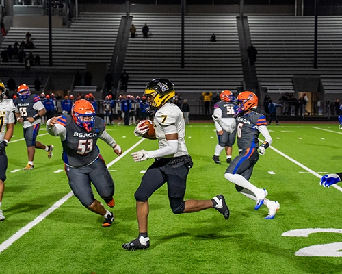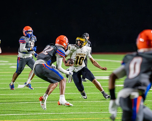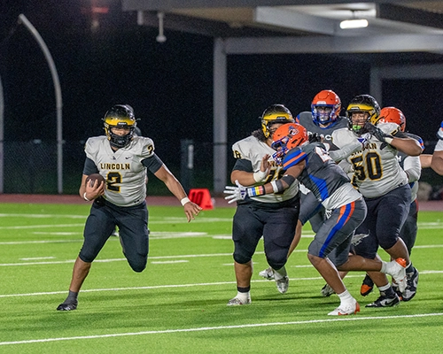 For Lincoln, Scranton carried 26 times for 117 yards and a score, imposing his will from start to finish. Kaho was a model of efficiency, completing 12 passes for 90 yards and a touchdown. Dennis proved a difference-maker, finishing with a touchdown on offense and a critical fumble return late in the game.