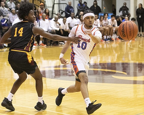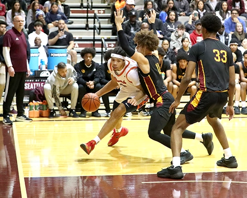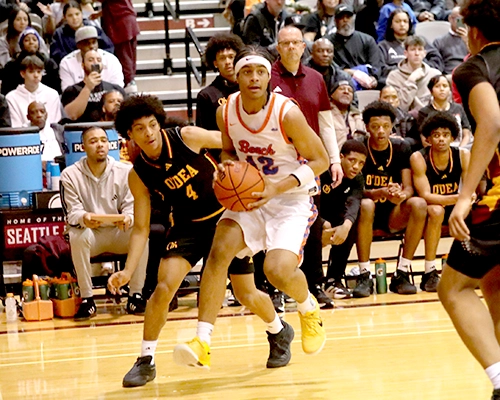 The first quarter started with the Vikings winning the tipoff but quickly turned the ball over, allowing O’Dea’s Peyton Brooks to score the first points of the night. Rainier Beach’s Micah Ili-Meneese jump-started the Vikings’ offense with a basket, and KJ Hightower followed with a basket of his own to give Rainier Beach an early 4-2 lead. O’Dea’s Brian Webster answered with a three-point shot to give his team a 5-4 lead. The teams continued to trade scores back and forth very quickly, with Vikings Tyran Stokes, Micah Ili-Meneese and Knowledge Wright connecting on layups and free throws as Rainier Beach extended its lead to 15-9. O’Dea stayed close, cutting it to 15-12 in the final minute of the opening quarter, but Stokes closed out the first quarter with a strong move that resulted in a three-point play, pushing the Vikings’ lead to 18-12 at the end of the first quarter.