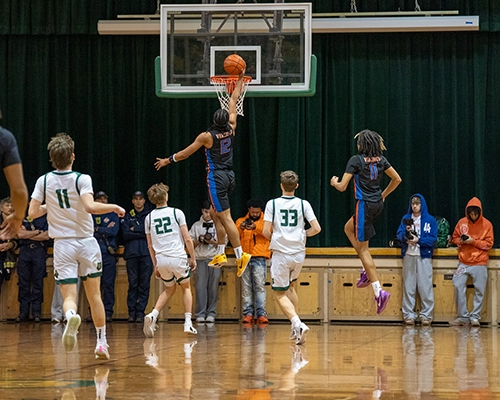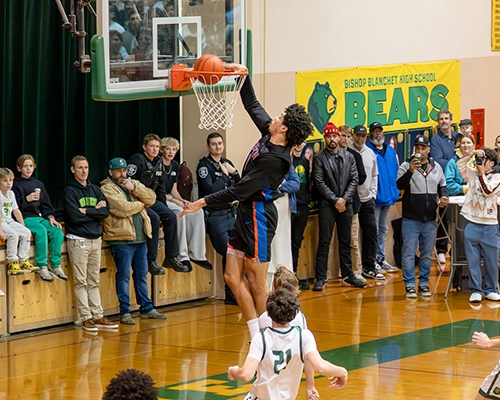 The Beach Boys set the tone early, winning the opening tip and jumping out to a quick lead behind aggressive defense and a scoring surge that stunned the Bears. Rainier Beach’s Tyran Stokes scored the first two points of the night, followed by a basket from Blanchet’s Cade McClenahan, but Rainier Beach quickly responded with a flurry of shots made by Stokes and Marques Ili-Menesse, including steals, blocks and contested shots at the rim. The other Ili-Menesse brother, Micah, made his presence felt with multiple tip-ins and finishes, while freshman star JJ Crawford controlled the offensive flow with assists to Stokes and Kellon Hightower, to go along with eight first-quarter points of his own.