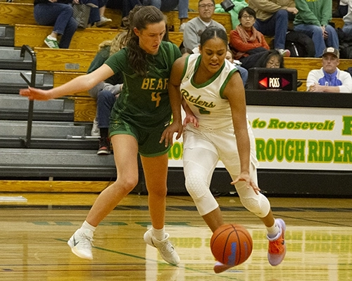 Roosevelt’s Giselle Dollar caught fire, hitting back-to-back 3s and completing a three-point play on a foul, quickly swinging the lead in Roosevelt’s favor. Dollar poured in 11 first-quarter points as the Roughriders rallied to take a 14-10 lead heading into the second quarter.