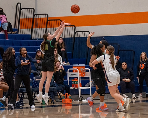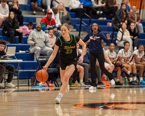 The Crusaders won the opening tip and got on the board first when Talia Cermak knocked down a three-point shot, but Roosevelt quickly answered right back with Audrey Richardson scoring the Roughriders first two points of the night. After a few early baskets on both sides, Roosevelt began to take over and control the tempo with strong rebounding and a consistent offensive rhythm, highlighted by a three-point shot from Ellery Burke-Brown and a steal-and-layup by Emma Curtis as Roosvelt too an early 10–7 lead.