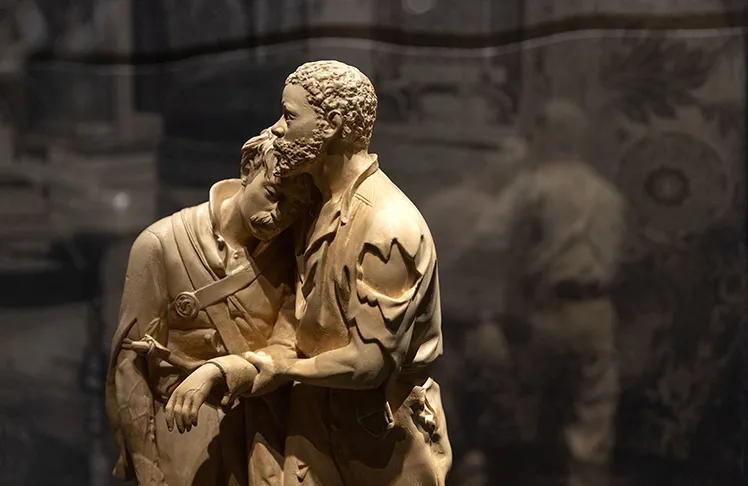 When it was unveiled in 1864, John Rogers’ “The Wounded Scout, a Friend in the Swamp,” was celebrated for its anti-slavery message and patriotic tone. But in 2025, a Smithsonian exhibition, “The Shape of Power: Stories of Race and American Sculpture,” asked visitors to reconsider the message behind the piece.