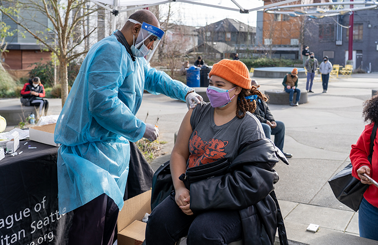 The Urban League of Metropolitan Seattle (ULMS), in collaboration with Boon Boona Coffee, a local Black-owned businesses, and Dunia Health Clinic, hosted a special vaccination event entitled Boosters @ Boon Boona. The goal of the event was to provide those in the community who have struggled to find access to medical resources with an opportunity to protect themselves amidst the continued rise of COVID-19 cases within King County.