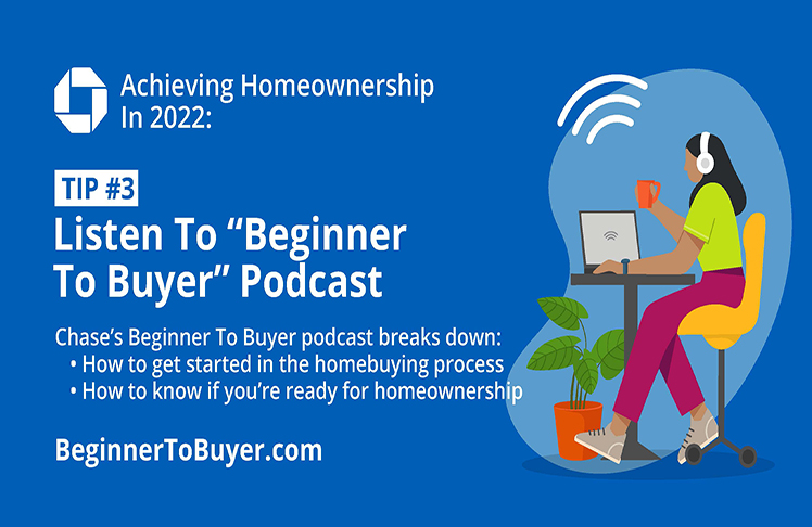 • Educate Yourself on The Process: Consumers planning to buy a home in 2022, particularly first-time buyers, should start by educating themselves on the homebuying process. There are many avenues for this, including a homebuying course, online articles, etc. One resource prospective buyers can consider is the new Beginner To Buyer podcast from Chase. The Beginner to Buyer breaks down the homebuying process – what it means, where to start, how to deal with what seems like an overwhelming process and more.