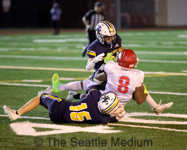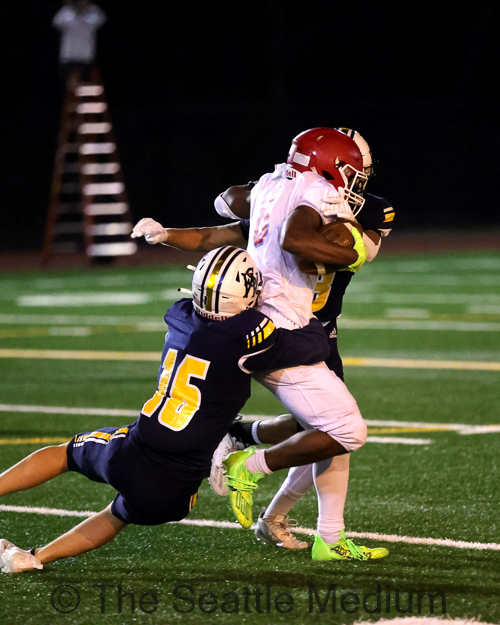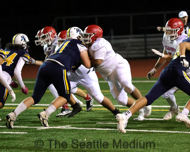 Chief Sealth’s defensive line and linebackers began putting enormous pressure at the line of scrimmage, forcing West Seattle’s quarterback to make difficult or incomplete passes.