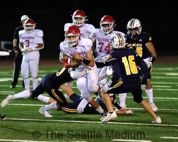 With five seconds remaining, the Wildcats needed one stop to survive Chief Sealth’s second-half rally and hand them their first loss of the season. West Seattle dropped their defense back to prevent a Hail Mary touchdown, Martinez threw downfield for an incompletion as time expired.